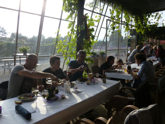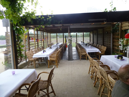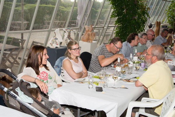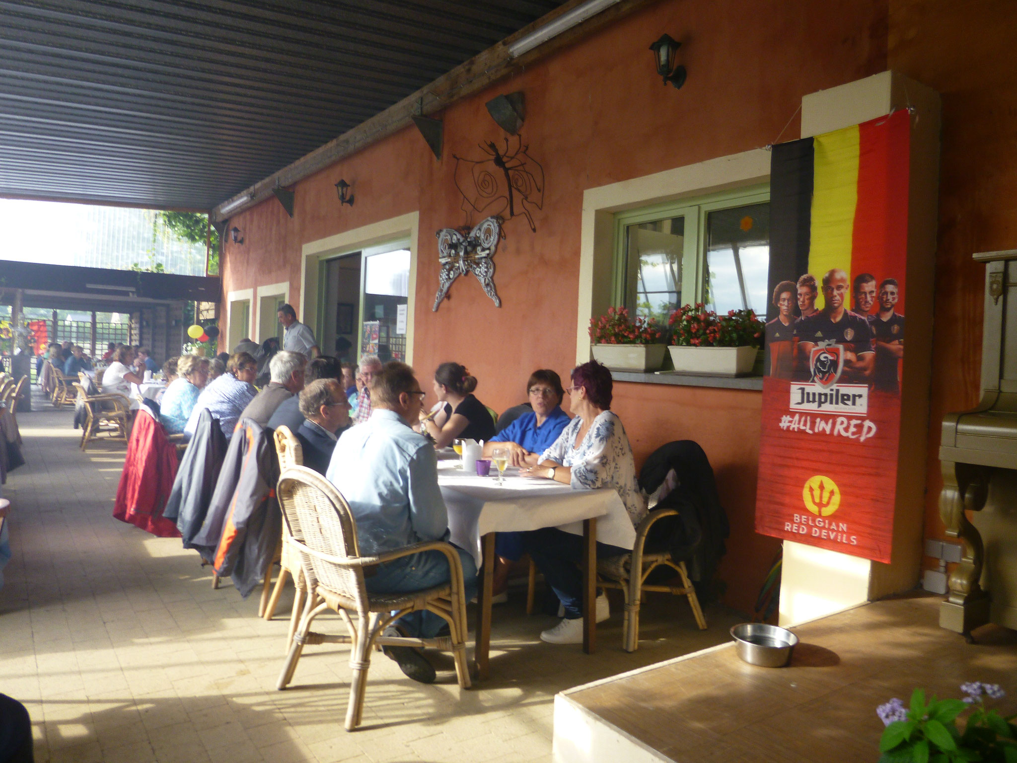 kan het wisselvallige zomerweertje ons niet tegenhouden. De glazen ruimte werd gezellig ingekleed en voorzien van een groot projectiescherm voor wat een beloftevolle match België-Wales moest