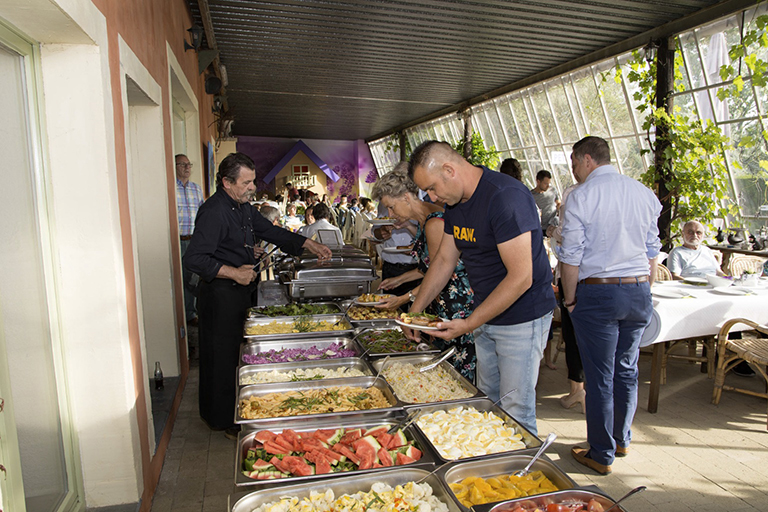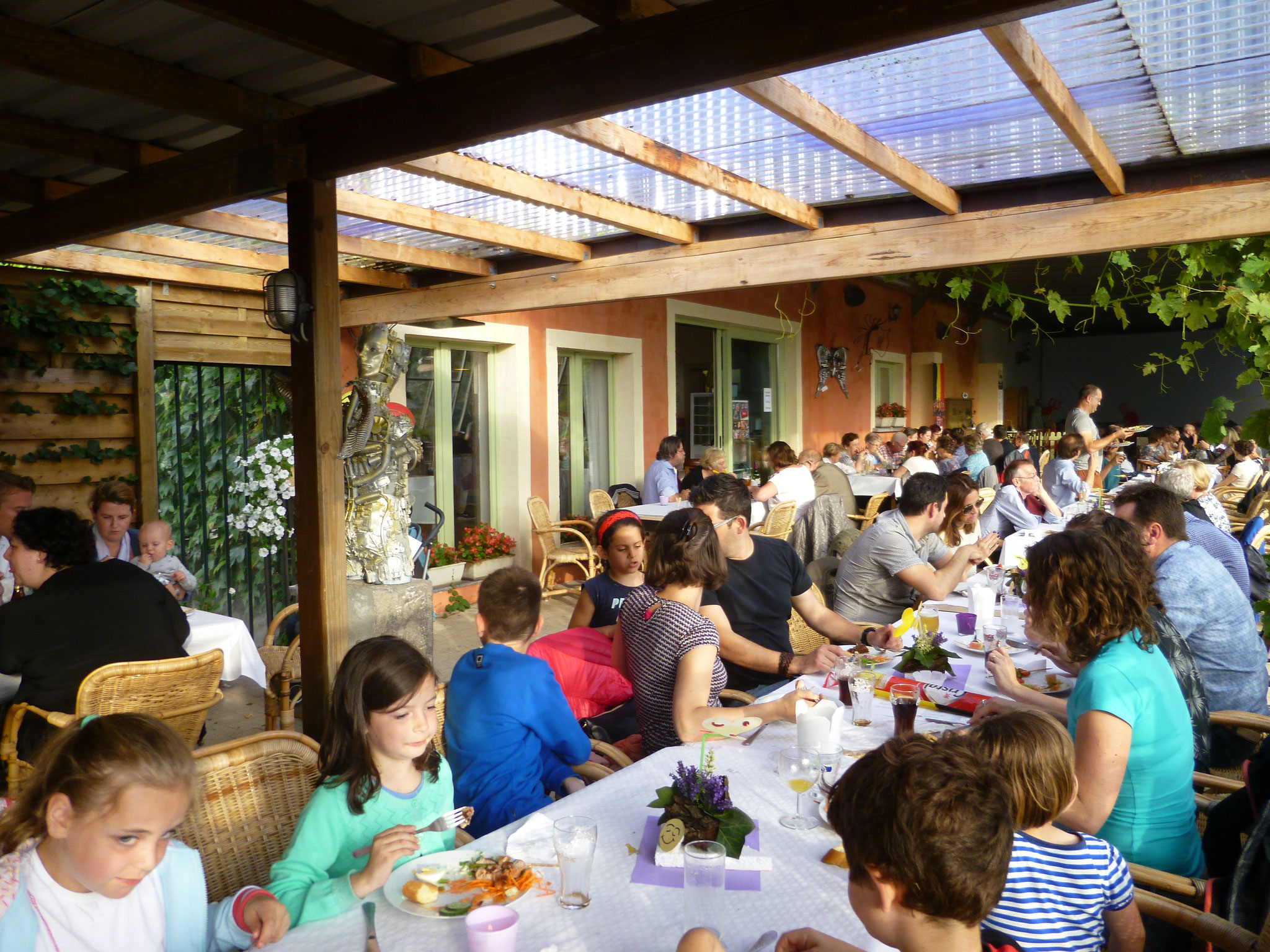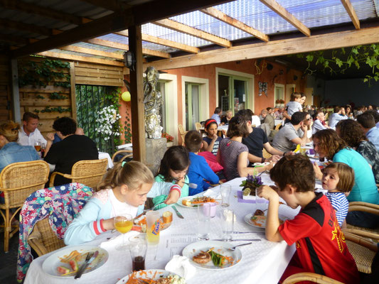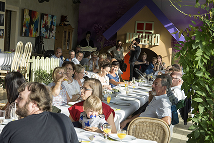 op rij stelde Miel, als goed buur, zijn volledig etablissement opnieuw voor één dag ter beschikking van het stratencomité. Na de receptie en een kort welkomstwoordje, kon iedereen aanschuiven