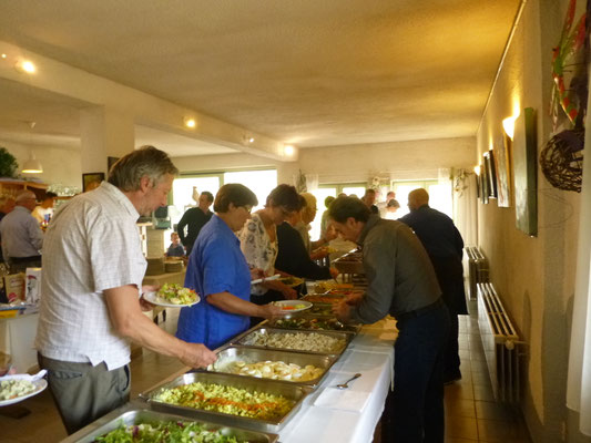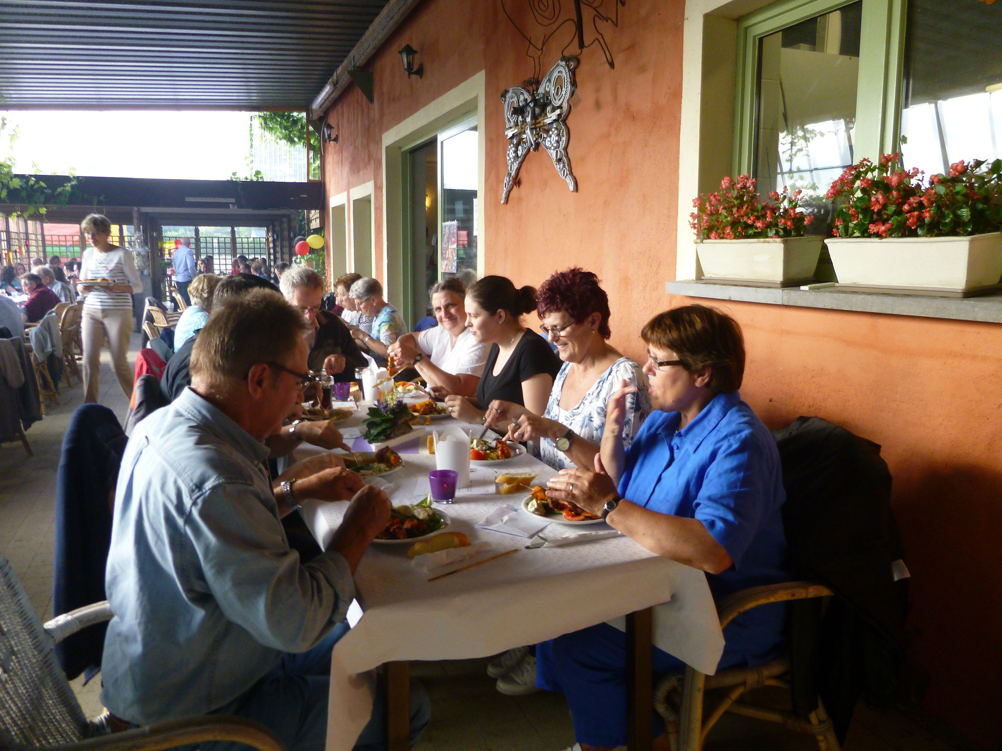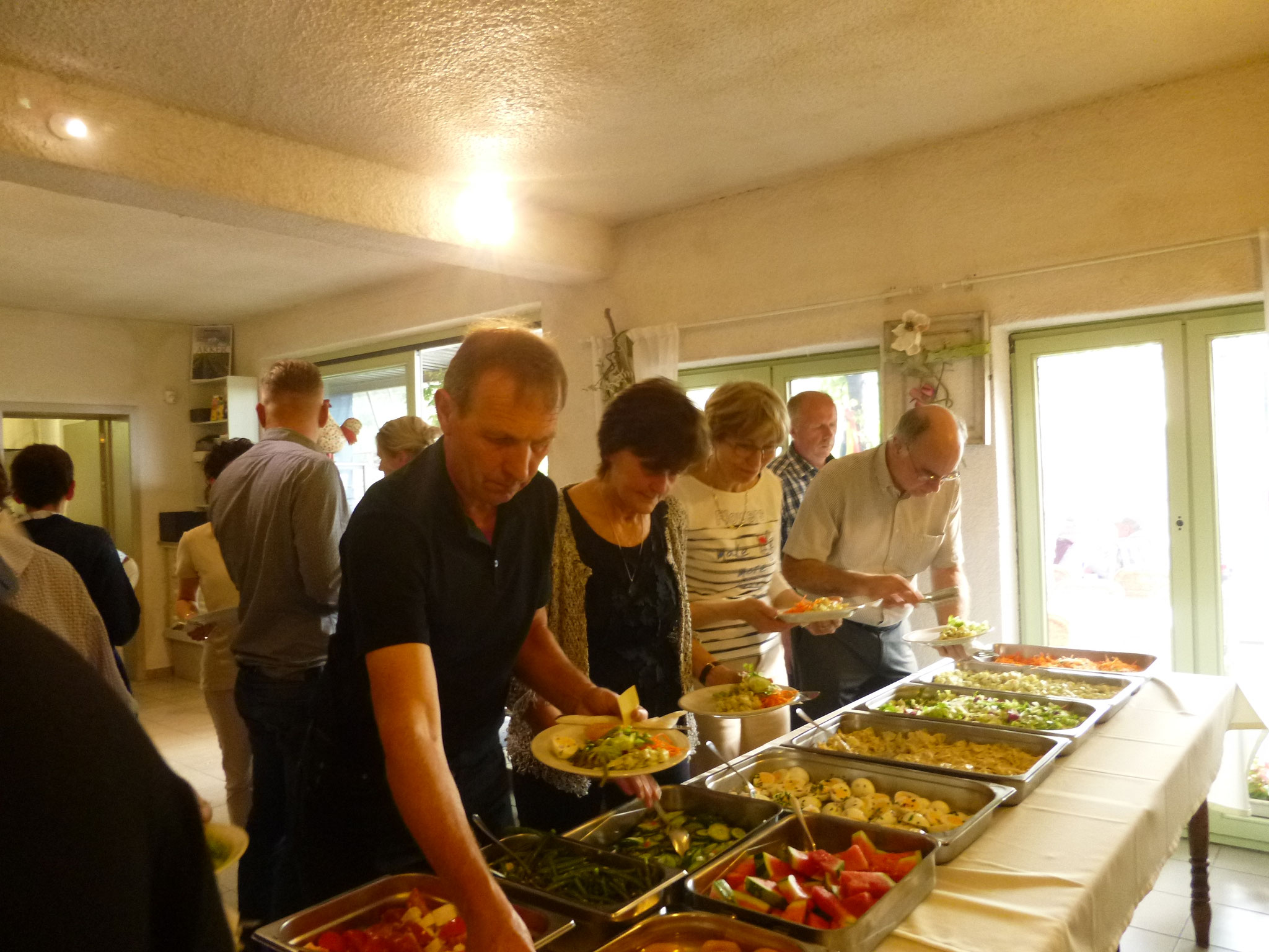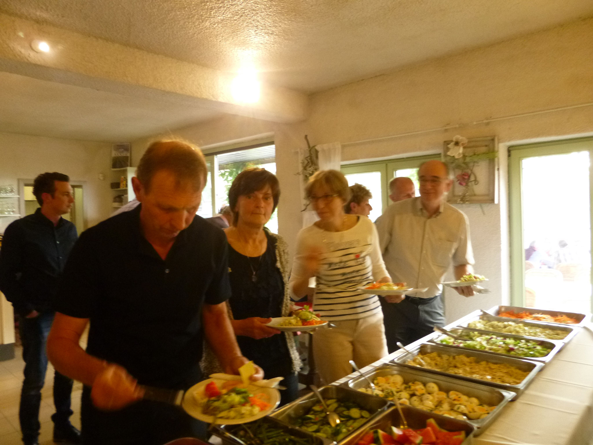 Na de keurige receptie, zorgde de huiskok voor een heerlijke BBQ. Het comité zorgde ook voor een dessertje om de hongerige magen definitief te vullen en klaar te maken voor de voetbalmatch. De
