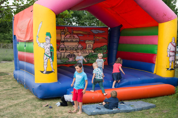 worden. De kinderen konden zich ten volle uitleven in de tuinen op het springkasteel.
