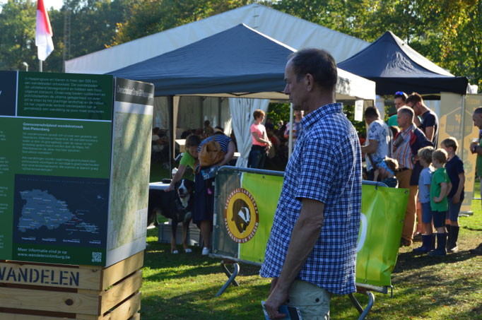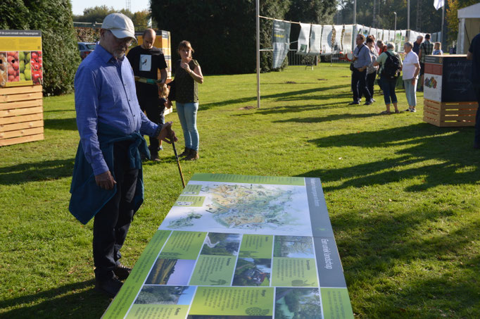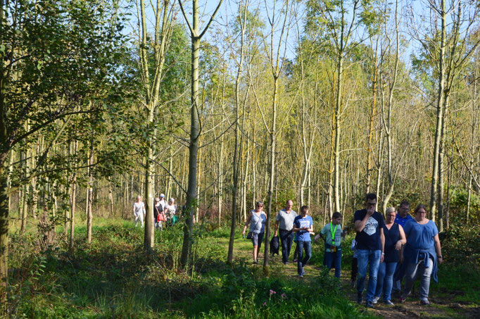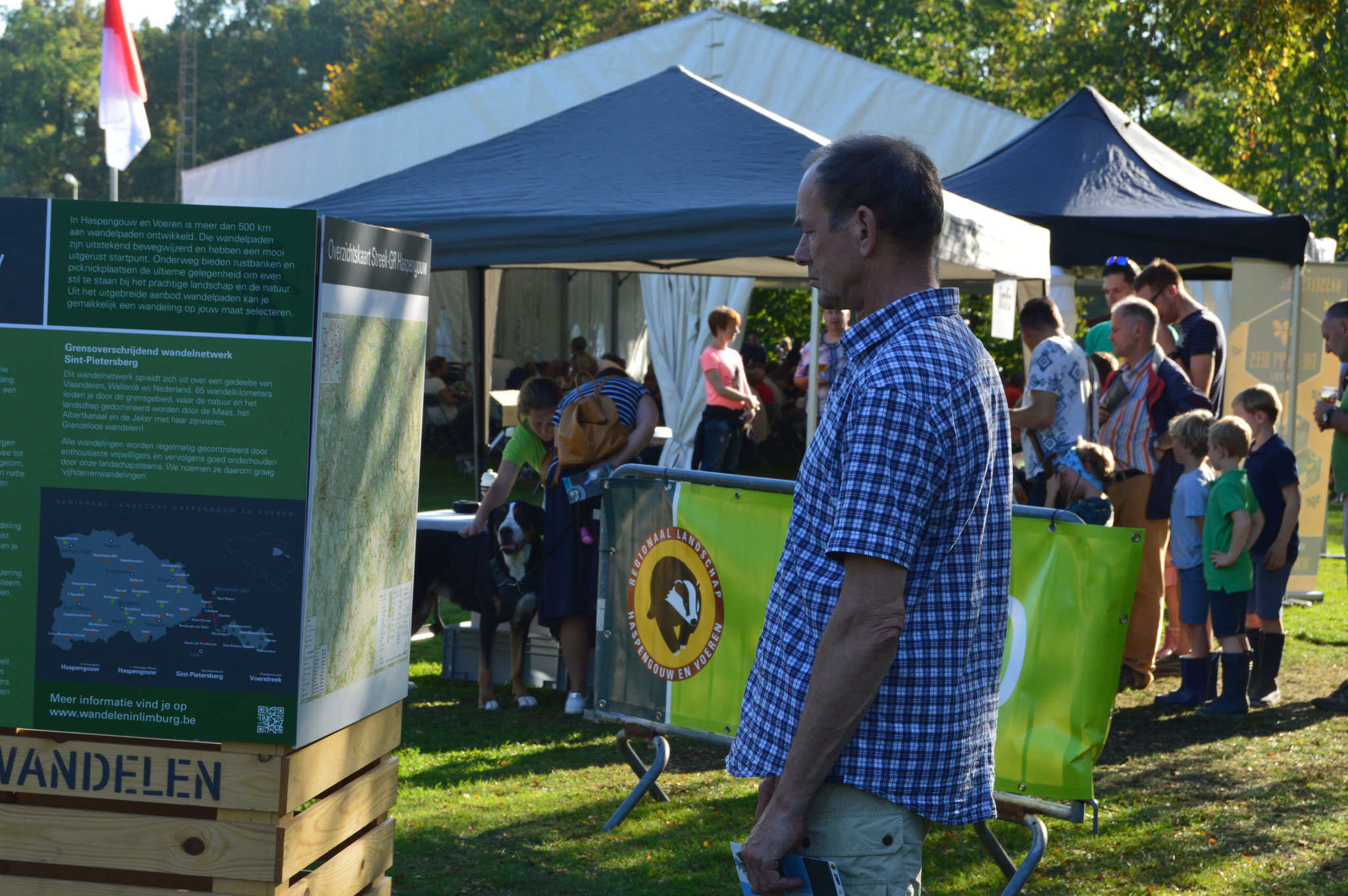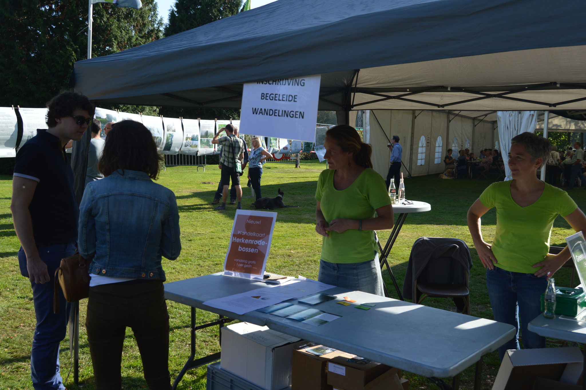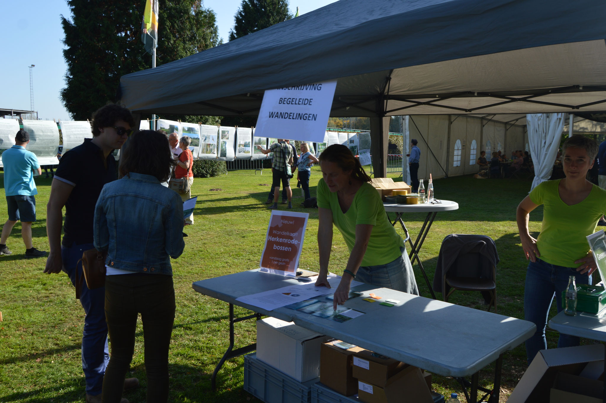infostanden lagen verspreid aan de ingang van het bosgebied. Medewerkers van Regionaal Landschap stonden iedereen graag te woord bij de vragen die zij kregen. Niets dan blije gezichten, ook bij