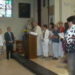 families en vrienden waren aanwezig tijdens de viering. Tijdens het voorlezen van een dankbrief van bisschop Hoogmartens pinkten François en Rita een traantje weg.